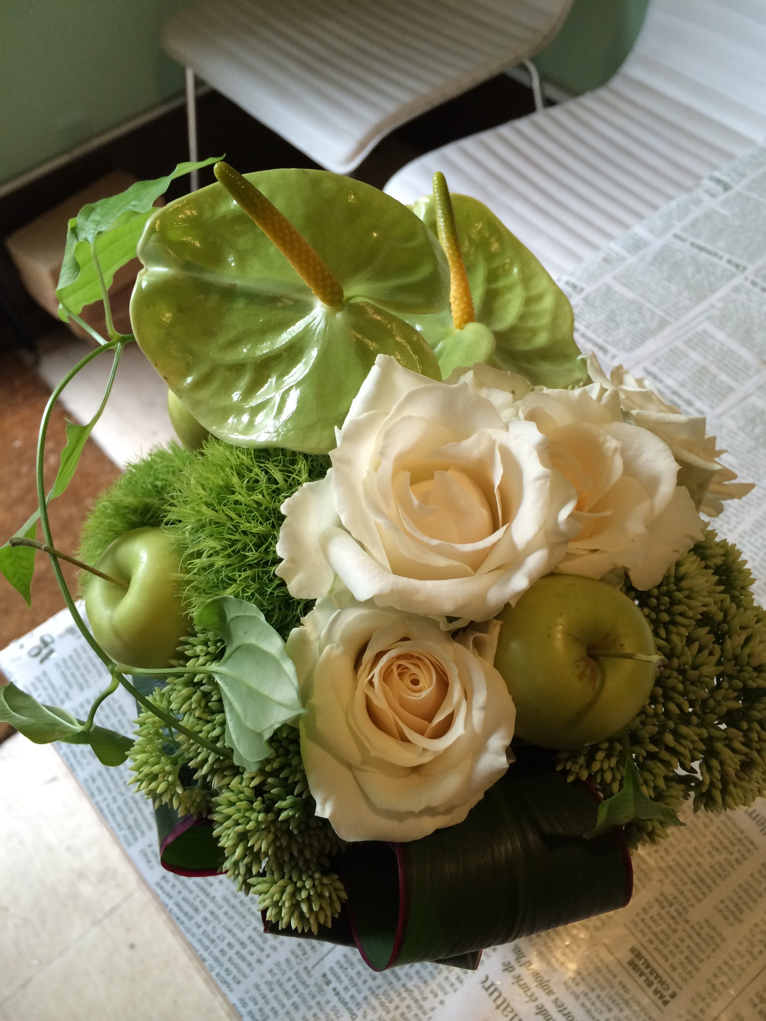 アンスリュームを入れたアレンジ